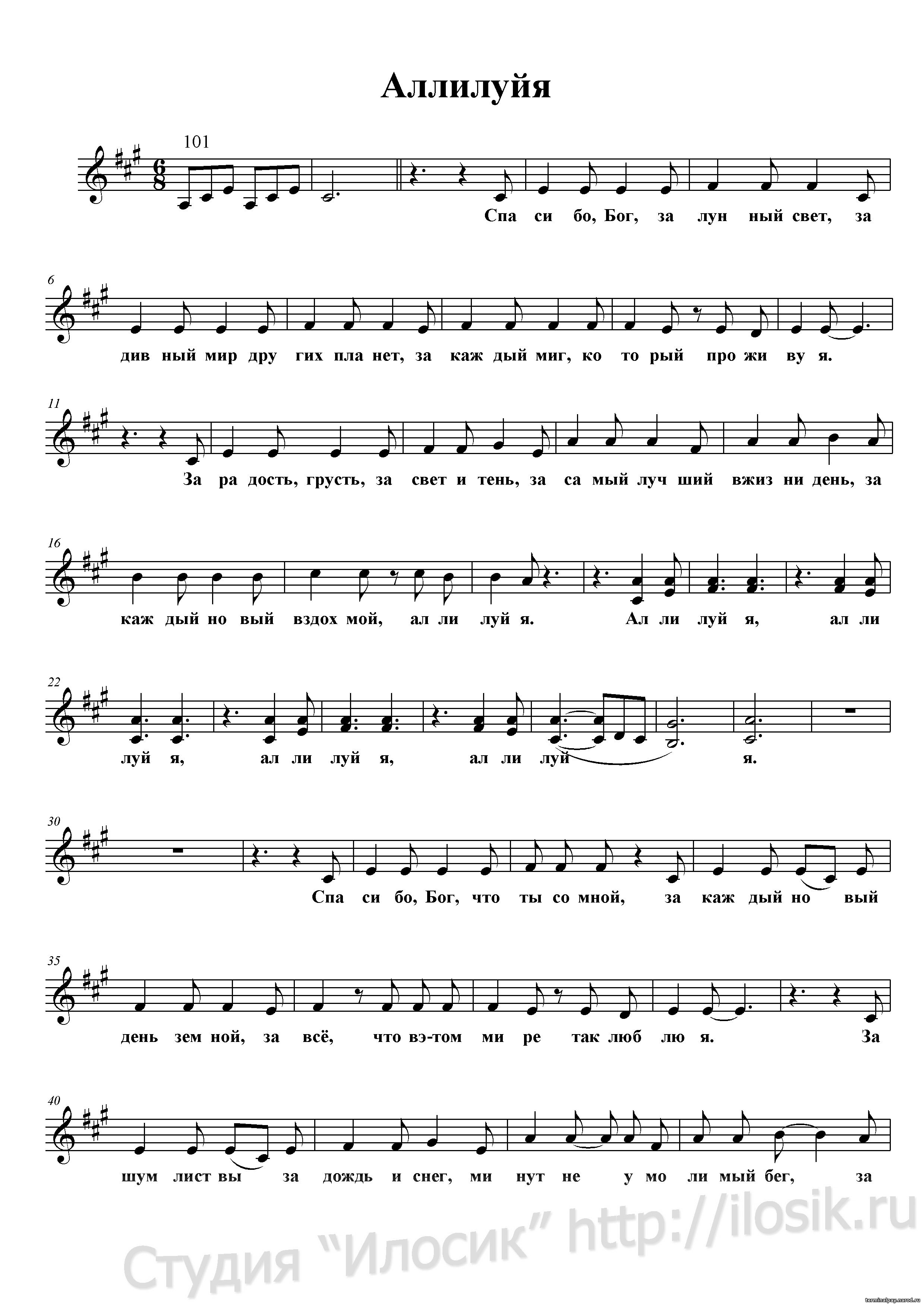 Аллилуйя, аллилуйя, аллилуйя, аллилуйя….
