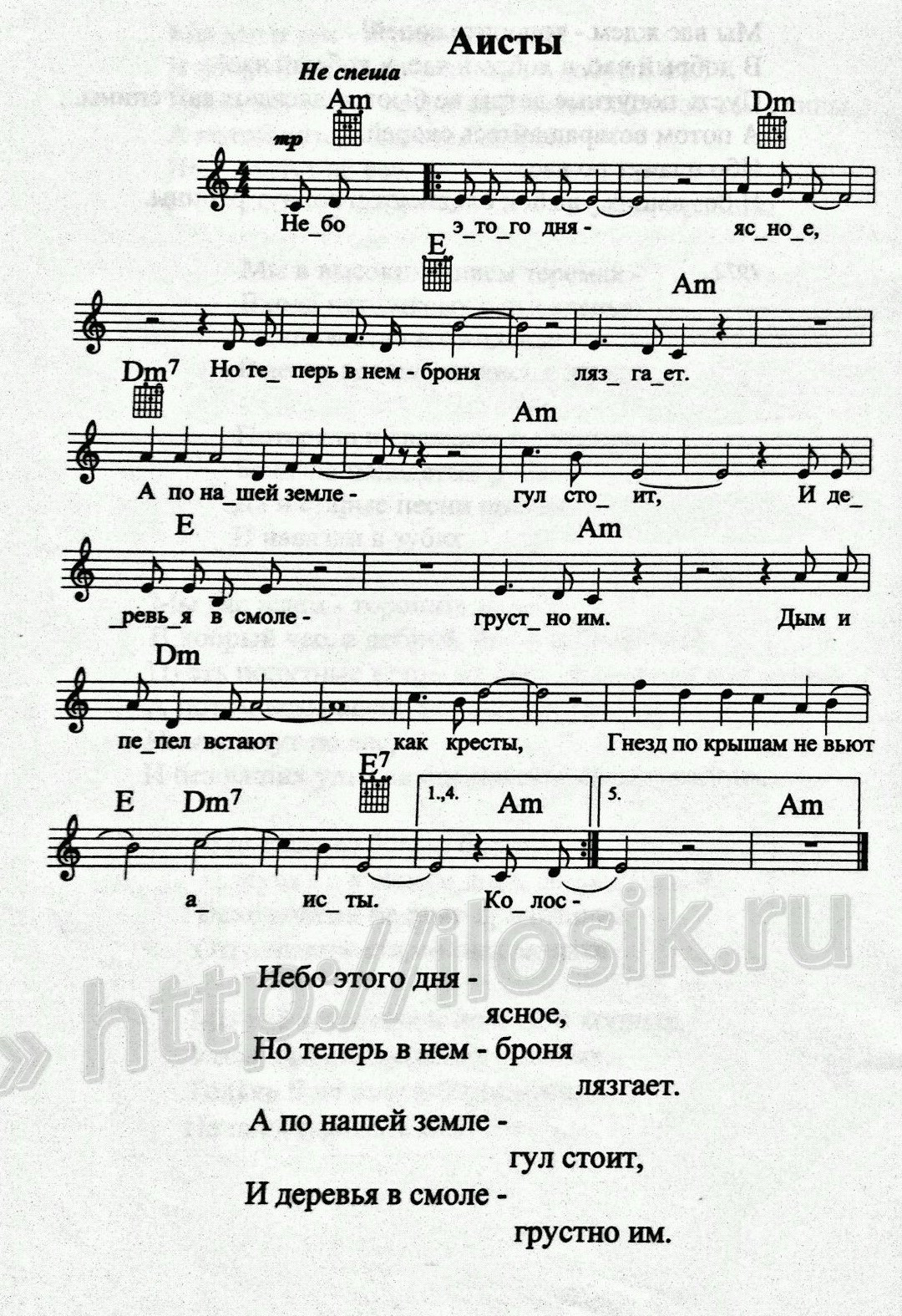 И над крышами нет аистов, аистов.