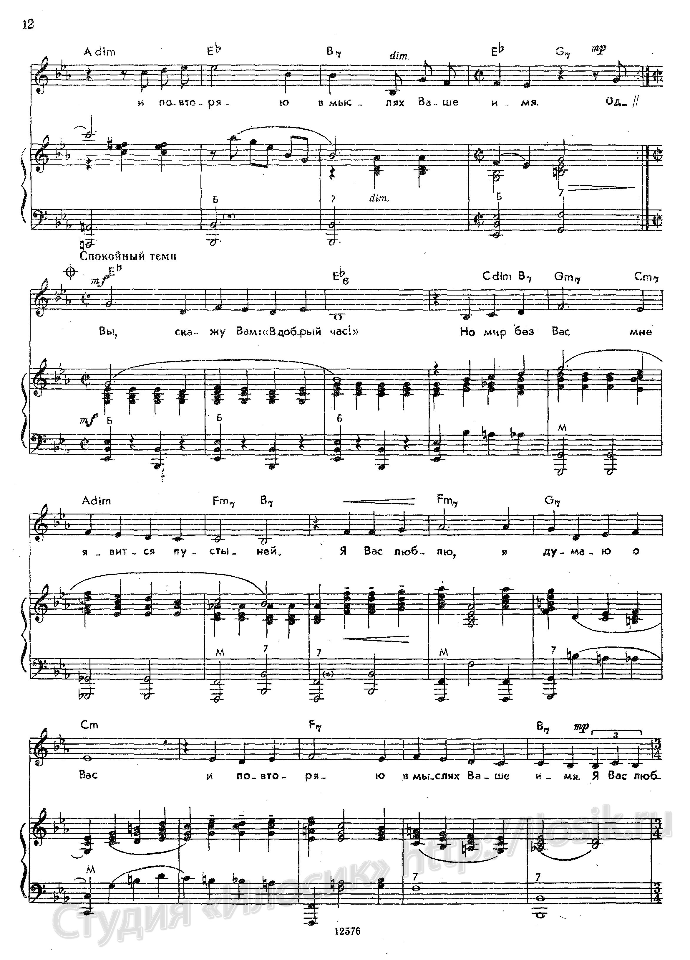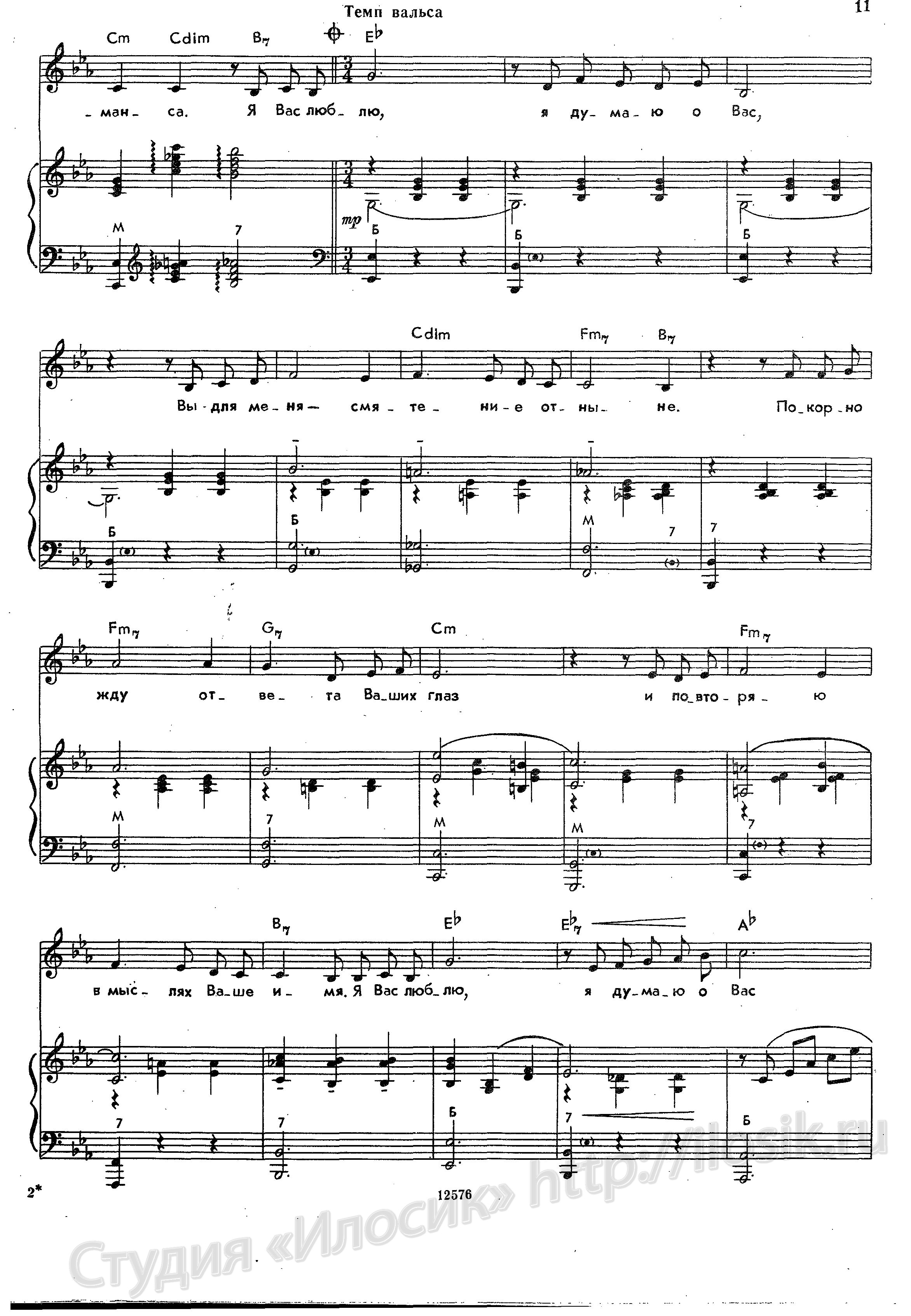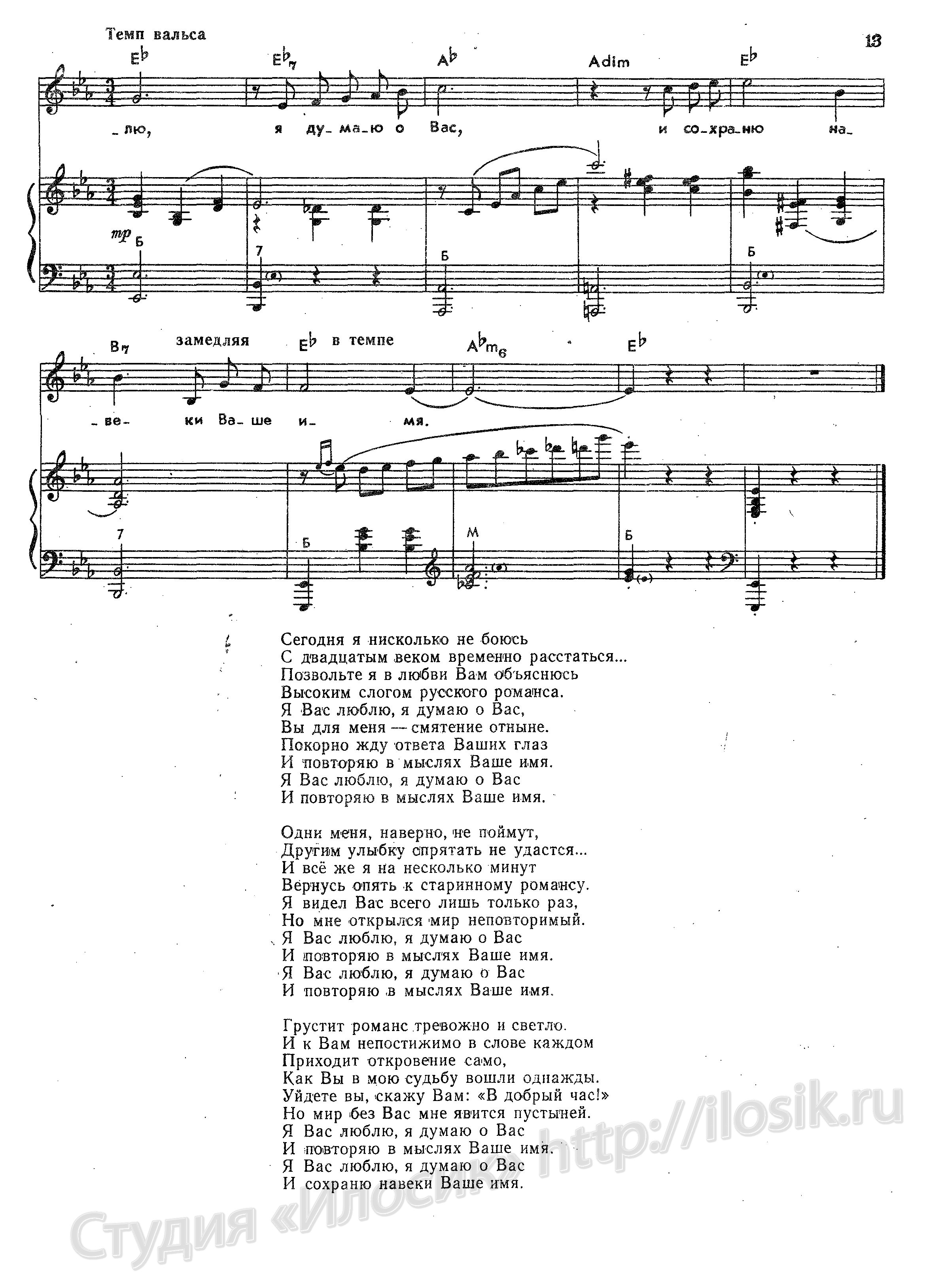Я Вас люблю, я думаю о вас,