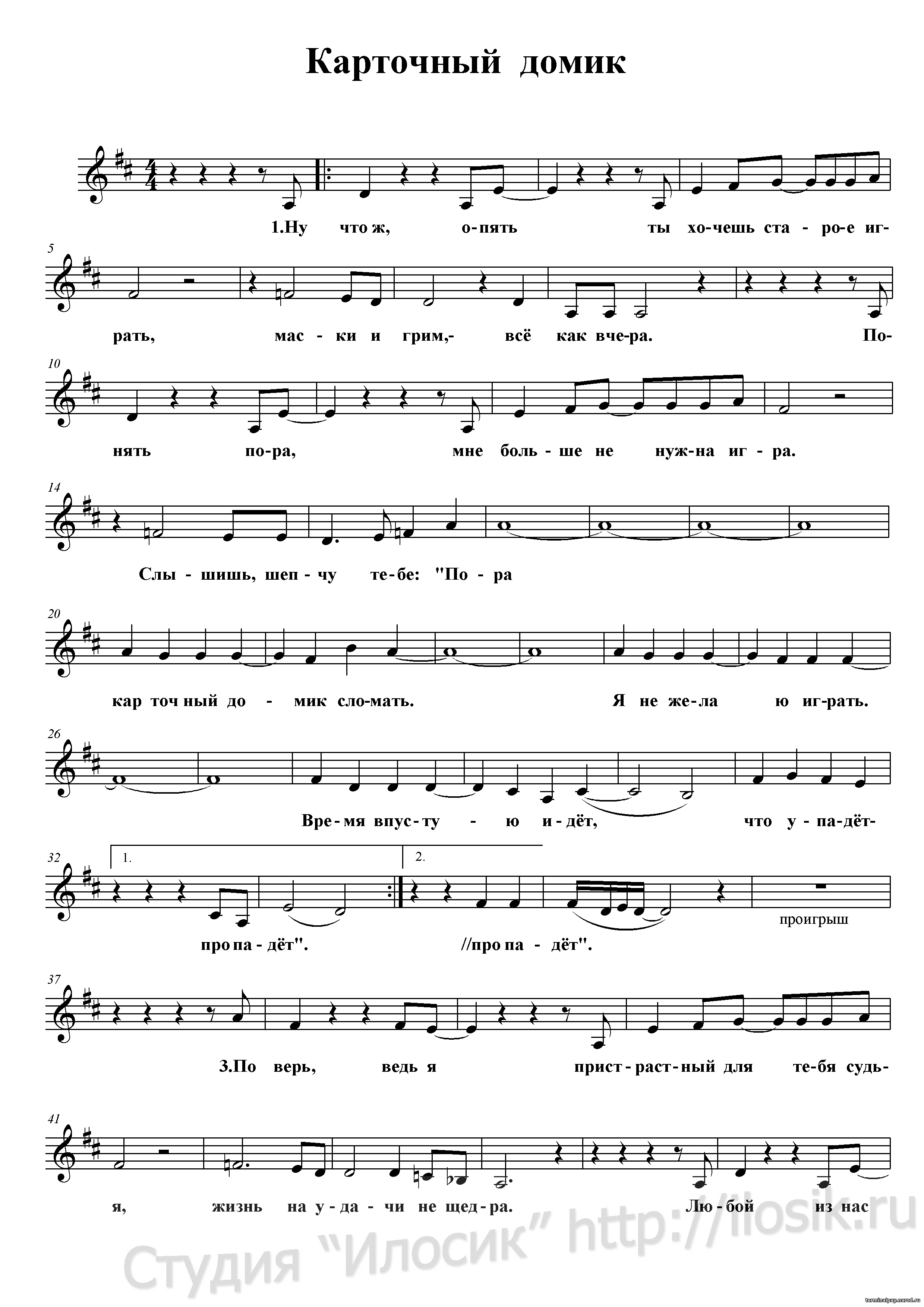 Прослушать НОТЫ: