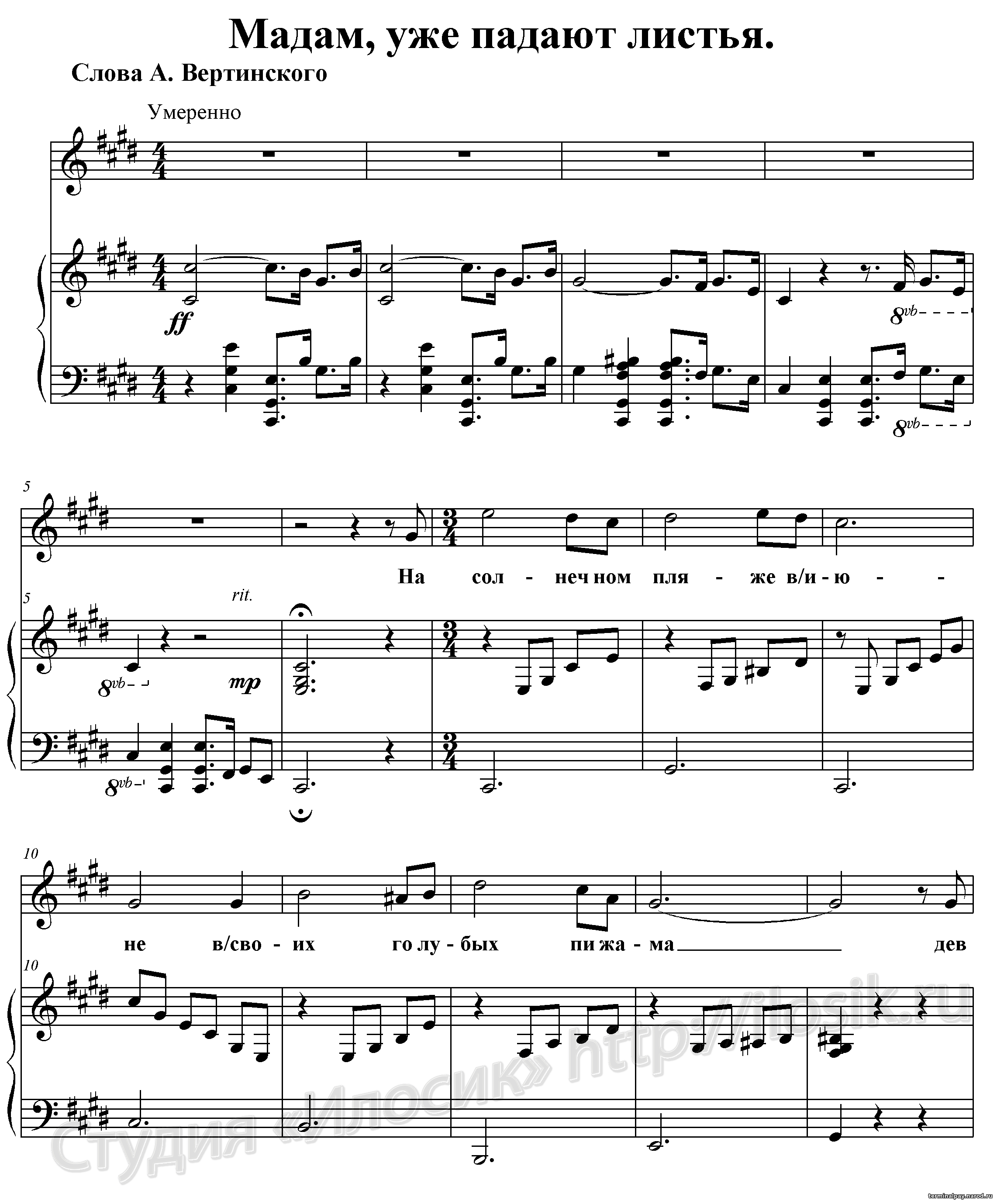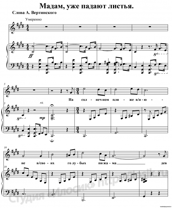 (из репертуара А. Вертинского)