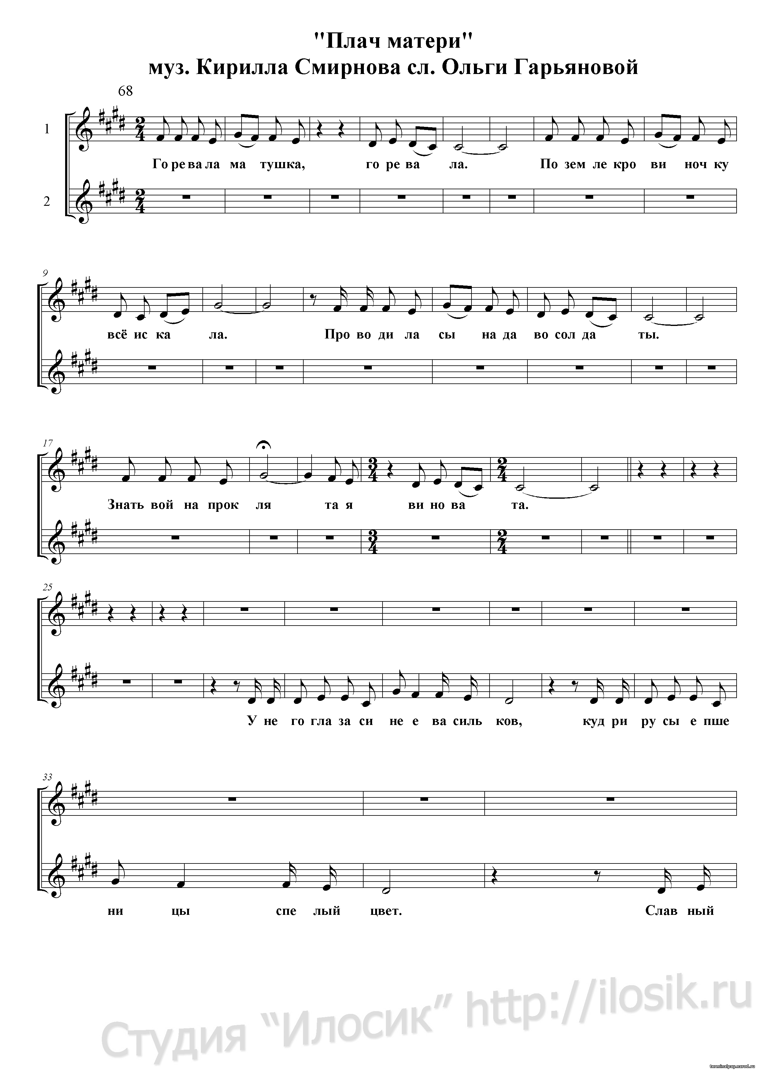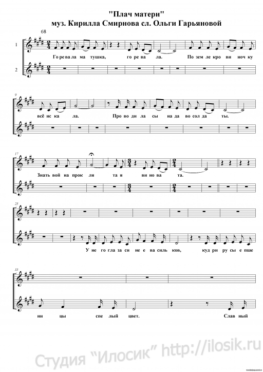 Плач матери (партитура) - Театр песни